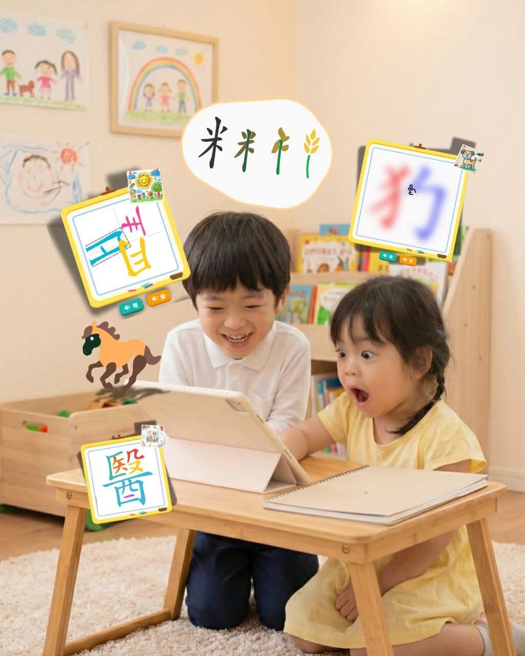 學習超過862個必學生字60個常用部首,增強兒童對中文自信心,體驗文字樂趣,立即習得閱讀書本的能力。